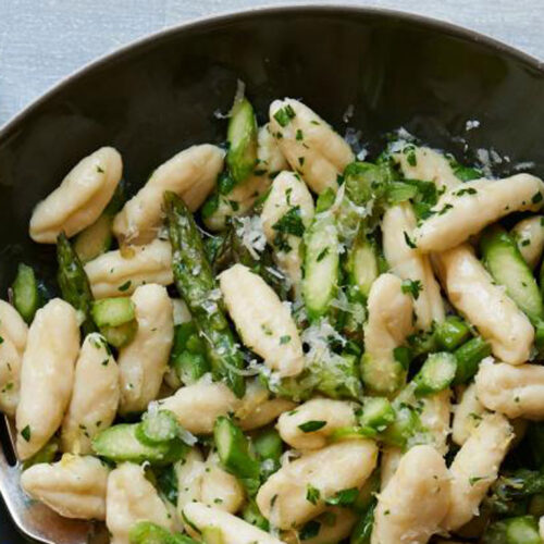 • Meanwhile, melt the butter in a large skillet over medium-high heat; add the Prime Time Asparagus and lemon zest and juice. Remove the cavatelli with a strainer or slotted spoon and add directly to the skillet along with 3/4 cup of the pasta cooking water. Cook, stirring gently, until the pasta is coated and the Asparagus is tender, 3 to 4 minutes; season with salt and pepper. Stir in the parmesan and parsley; serve with more parmesan.