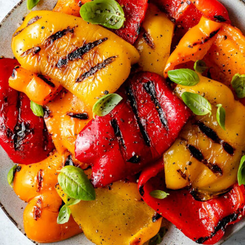 - Serve immediately, with a sprinkling of fresh herbs as desired. If serving on a grilled vegetable platter, drizzle with a light & bright herbaceous sauce, like pesto or chimichurri. Grilled peppers are also amazing add-ons for any variety of meals, from grilled chicken bowls to grilled pizza to silky-smooth creamy soup. Enjoy!