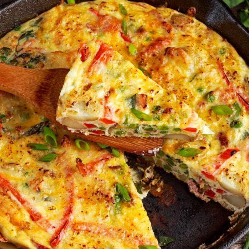 • Remove from heat and top frittata with cheese. Place in oven and broil 2 minutes until egg is cooked on top and cheese has melted.